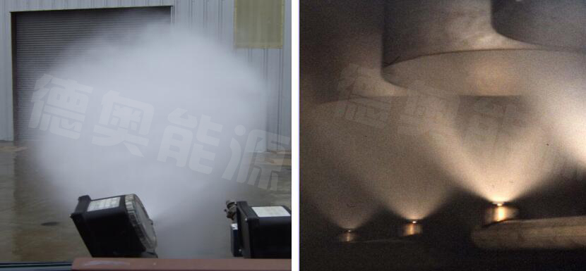 霧化區(qū):根據(jù)工況的差異在殼體內(nèi)設(shè)置一層以上(含一層)噴水面,每層噴水面裝設(shè)多個(gè)多級(jí)引射霧化噴頭,噴出的霧流聚焦形成一個(gè)圓錐形射流霧錐面,工作時(shí)能產(chǎn)生多重引射吸收效果,使乏汽與水接觸面積大大增加,強(qiáng)化了傳質(zhì)效果。霧化所需冷卻水量可根據(jù)熱水溫度調(diào)節(jié)控制,避免冷卻水供應(yīng)量過(guò)大的問(wèn)題。