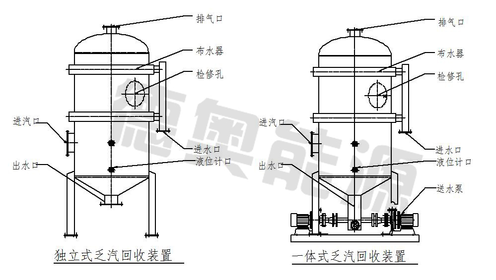 二是一體式。對(duì)安裝位置沒(méi)有特殊要求,能將乏汽回收并送往指定位置,設(shè)備全自動(dòng)控制。設(shè)備主體、控制儀表、控制柜、水泵及設(shè)備底座一體化設(shè)
