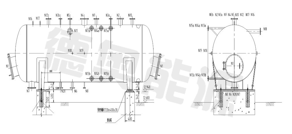 低位布置內(nèi)置(無(wú)頭)式熱力除氧器 |